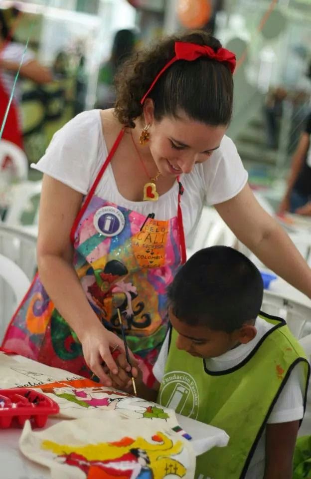 El proyecto más importante que desarrollé en la Fundación Fanalca, fue la “Mochilatón. Todos pintamos, Cali te amamos” que, en este año (2020) cumple 8 años. Esta actividad nació en el programa «Pintura en el Parque” donde yo realizaba mis clases de arte a niños en situación vulnerable de la ciudad. Un día, fui a una Institución Educativa pública y vi que un niño estaba guardando sus útiles escolares en una bolsa plástica porque no tenía maletín y en ese momento cambié el chip, el arte debe ser bello, pero depende de la situación, también debe ser útil. Entonces empecé a dar mis clases no en papel o cartulina, sino en trozos de tela que luego eran confeccionados y convertidos en mochilas por un grupo de mujeres también de situación vulnerable. Los trabajos en cartulina se acumulaban en la “Casita del arte” como se llamaba el espacio donde dictaba mis clases, pues los niños algunos no se los llevaban, sus padres no tenían recursos para enmarcarlos y se quedaban guardados acumulando polvo y bichos. El chisme voló en el barrio, la gente decía: “la profesora de arte del parque estaba dando mochilas en las clases de pintura” y fueron llegando cada vez más niños que querían pintar sus mochilas. Fue en ese entonces, que hablé con la Directora de la Fundación y le dije que hiciéramos esta actividad masiva porque era exitosa y a su vez enseñábamos la cultura ciudadana y sentido de pertenencia por los lugares emblemáticos de Cali, pues hacer recorridos y salidas pedagógicas con todos los niños era muy costoso y se sumaba al propósito de la fundación que era enseñar la cultura ciudadana. Elizabeth, la Directora de la fundación, inmediatamente copió la idea y propuso hacerla todos pintando a la vez.
